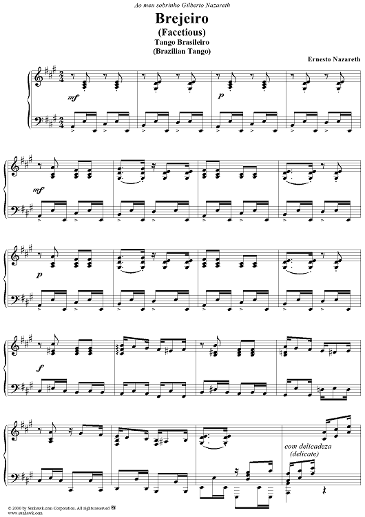 Digital Sheet Music for Brejeiro by Ernesto Nazareth scored for Piano Solo; id:236611