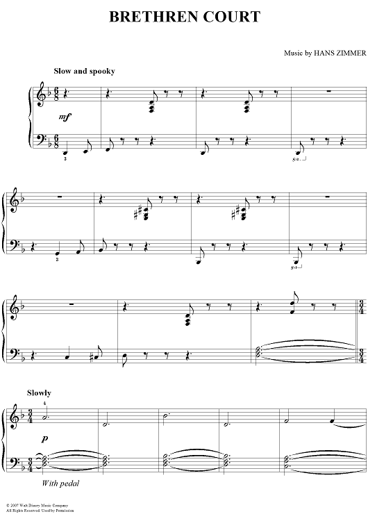 Digital Sheet Music for Brethren Court by Hans Zimmer scored for Easy Piano; id:399364