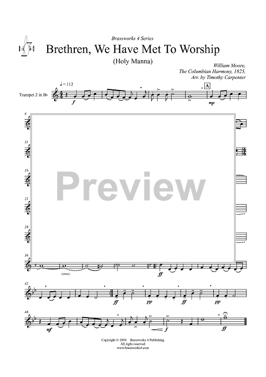 Digital Sheet Music for Brethren, We Have Met To Worship - Trumpet 2 in B-flat by William Moore, Timothy Carpenter scored for Brass Quintet; id:410426