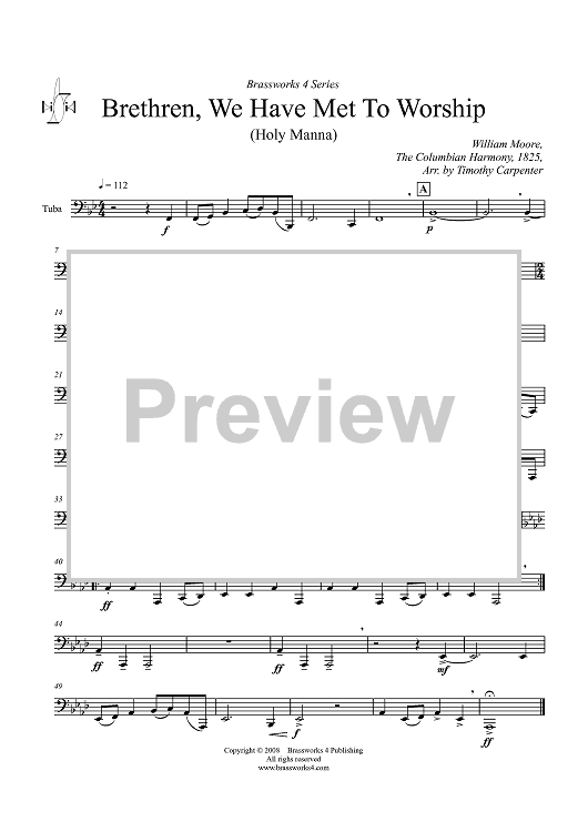 Digital Sheet Music for Brethren, We Have Met To Worship - Tuba by William Moore, Timothy Carpenter scored for Brass Quintet; id:410429