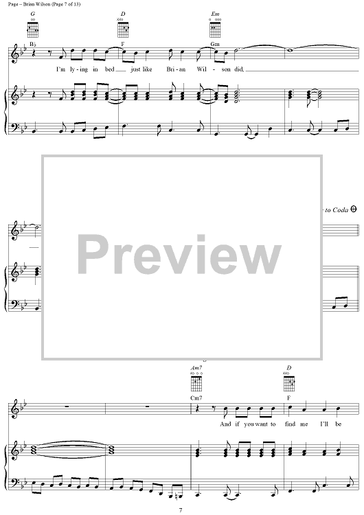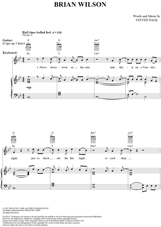 Digital Sheet Music for Brian Wilson by Steven Page, Barenaked Ladies scored for Piano/Vocal/Chords; id:288889