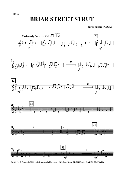 Digital Sheet Music for Briar Street Strut - Horn in F by , Jared Spears scored for Concert Band; id:461455