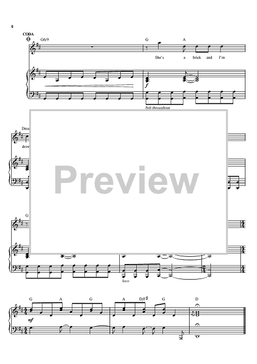 Digital Sheet Music for Brick by Ben Folds, Darren Jessee, Ben Folds Five scored for Piano/Vocal/Chords; id:398583