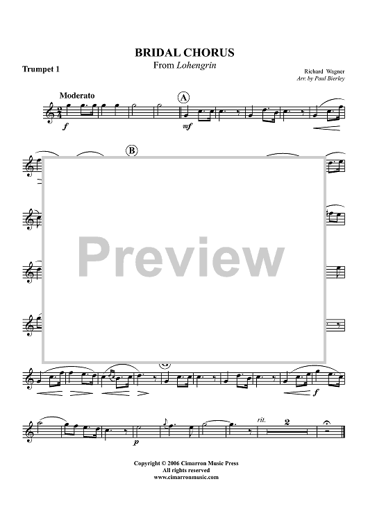 Digital Sheet Music for Bridal Chorus - Trumpet 1 by Richard Wagner, Paul Bierley scored for Brass Quintet; id:321112