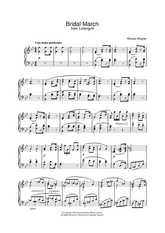 Digital Sheet Music for Bridal March by Richard Wagner scored for Piano; id:390369