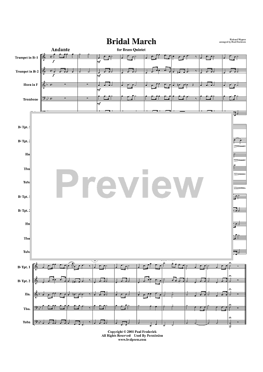 Digital Sheet Music for Bridal March - Score by Richard Wagner, Paul Frederick scored for Brass Quintet; id:314653