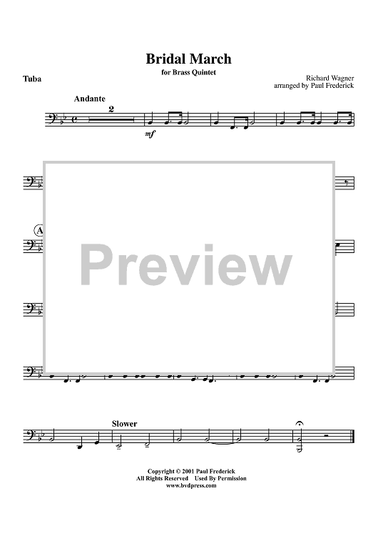 Digital Sheet Music for Bridal March - Tuba by Richard Wagner, Paul Frederick scored for Brass Quintet; id:314658
