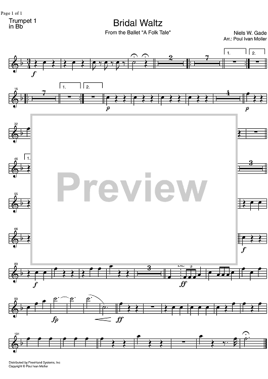 Digital Sheet Music for Bridal Waltz from A Folk Tale - B-flat Trumpet 1 by Niels Gade, Poul Ivan Moller scored for Concert Band; id:326717