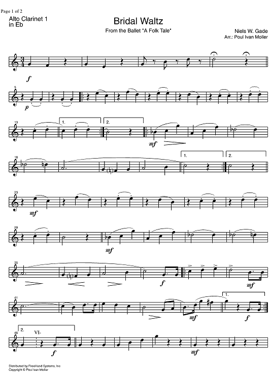 Digital Sheet Music for Bridal Waltz from A Folk Tale - E-flat Alto Clarinet 1 by Niels Gade, Poul Ivan Moller scored for Concert Band; id:326705