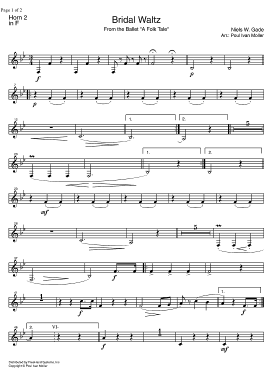 Digital Sheet Music for Bridal Waltz from A Folk Tale - Horn in F 2 by Niels Gade, Poul Ivan Moller scored for Concert Band; id:326711