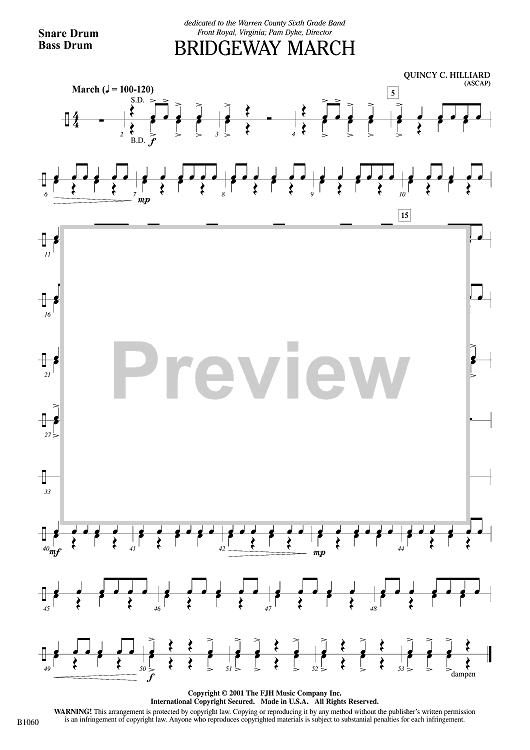 "Bridgeway March - Snare Drum" Sheet Music by Quincy C. Hilliard