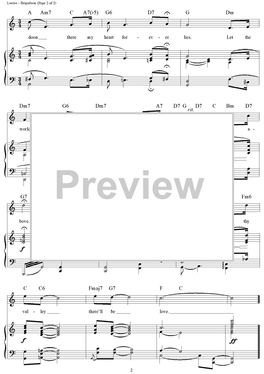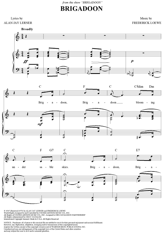 Digital Sheet Music for Brigadoon by Frederick Loewe, Alan Jay Lerner scored for Piano/Vocal/Chords; id:116867