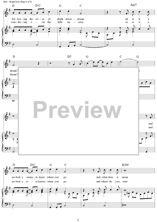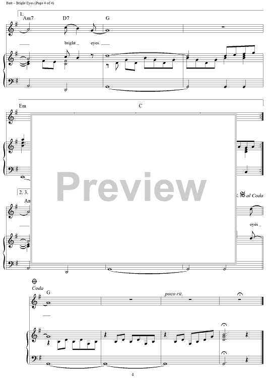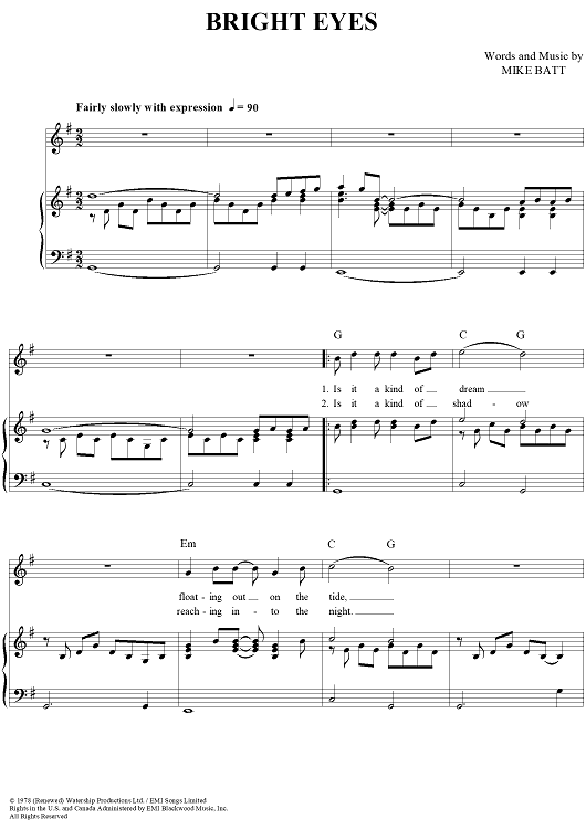 Digital Sheet Music for Bright Eyes by Art Garfunkel, Mike Batt scored for Piano/Vocal/Chords; id:441388