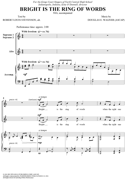 "Bright is the Ring of Words" Sheet Music by Douglas E. Wagner