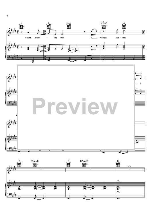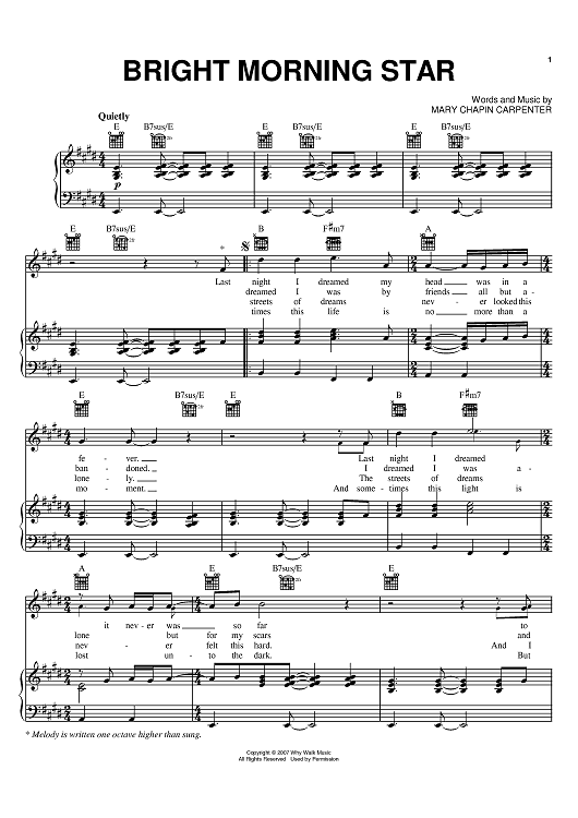 Digital Sheet Music for Bright Morning Star by Mary Chapin Carpenter scored for Piano/Vocal/Chords; id:397763