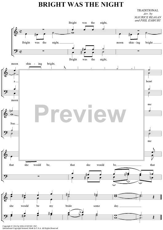 Digital Sheet Music for Bright Was the Night by Phil Embury, Maurice Reagan, Traditional scored for Barbershop Quartet; id:240641