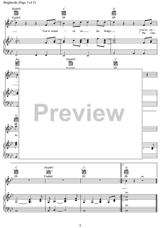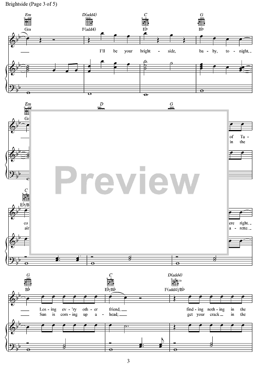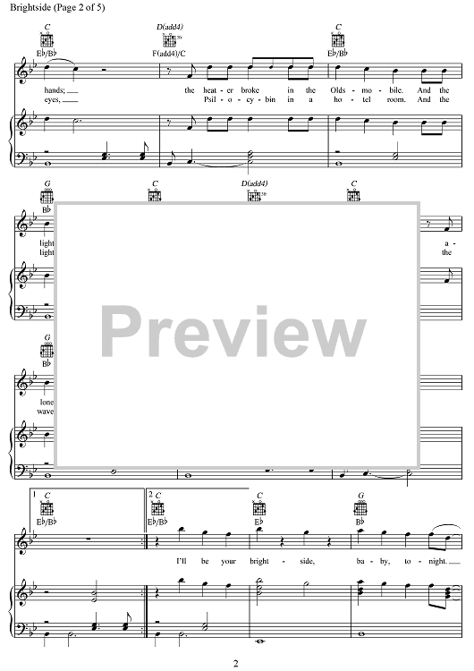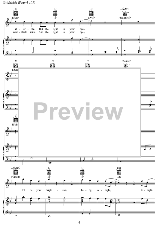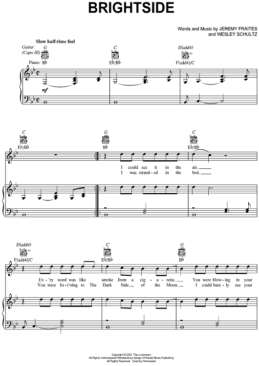 Digital Sheet Music for Brightside by Jeremy Fraites, Wesley Schultz, The Lumineers scored for Piano/Vocal/Chords; id:469812