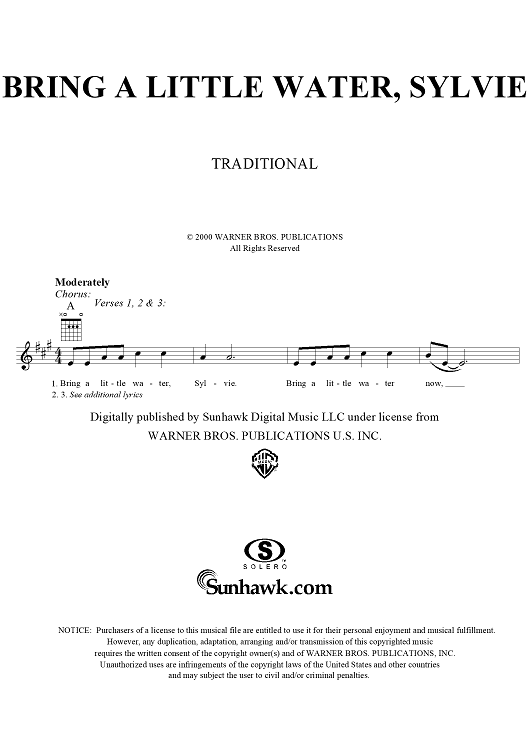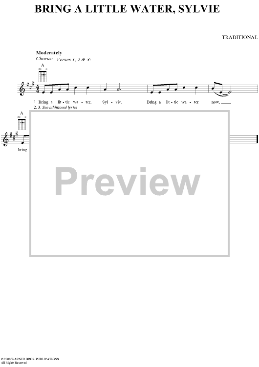 "Bring a Little Water, Sylvie" Sheet Music by Traditional
