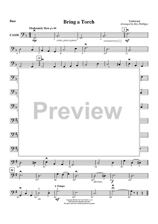 Digital Sheet Music for Bring A Torch - Bass by Traditional, Roy Phillippe scored for Orchestra; id:408025