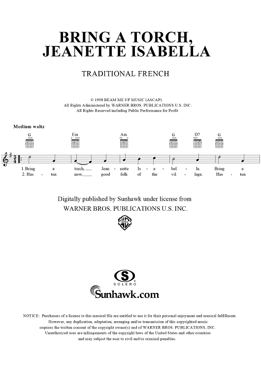 "Bring a Torch, Jeanette Isabella" Sheet Music by Traditional