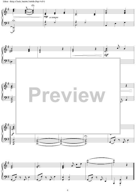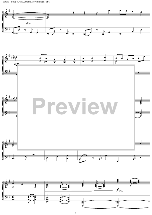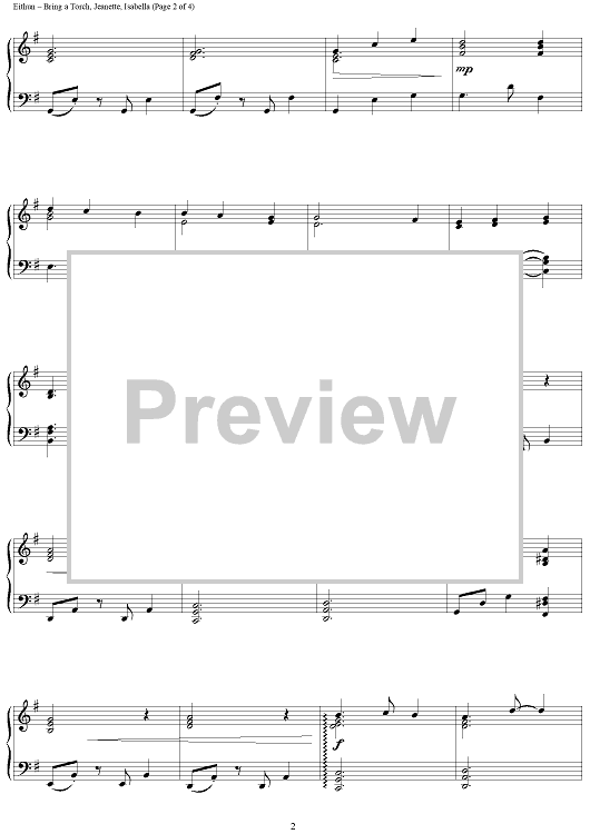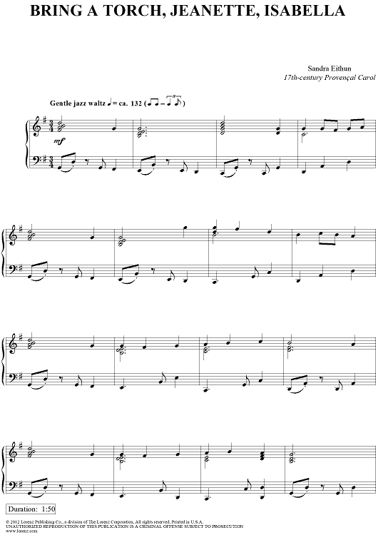 Digital Sheet Music for Bring a Torch, Jeanette, Isabella by Sandra Eithun, 17th-century French Carol scored for Piano Solo; id:437708