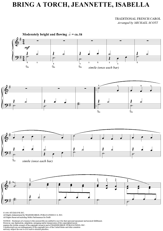 Digital Sheet Music for Bring a Torch, Jeannette, Isabella by Michael Scott, Traditional scored for Piano Solo; id:260619