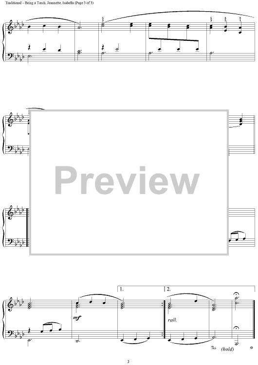 "Bring a Torch, Jeannette, Isabella" Sheet Music by Traditional