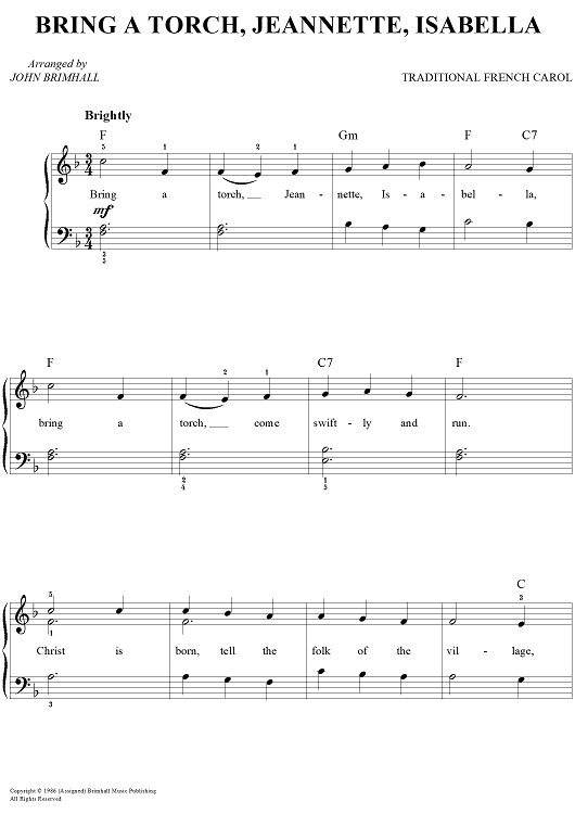 Digital Sheet Music for Bring a Torch, Jeannette, Isabella by John Brimhall, Traditional French Carol scored for Easy Piano/Vocal/Chords; id:450527