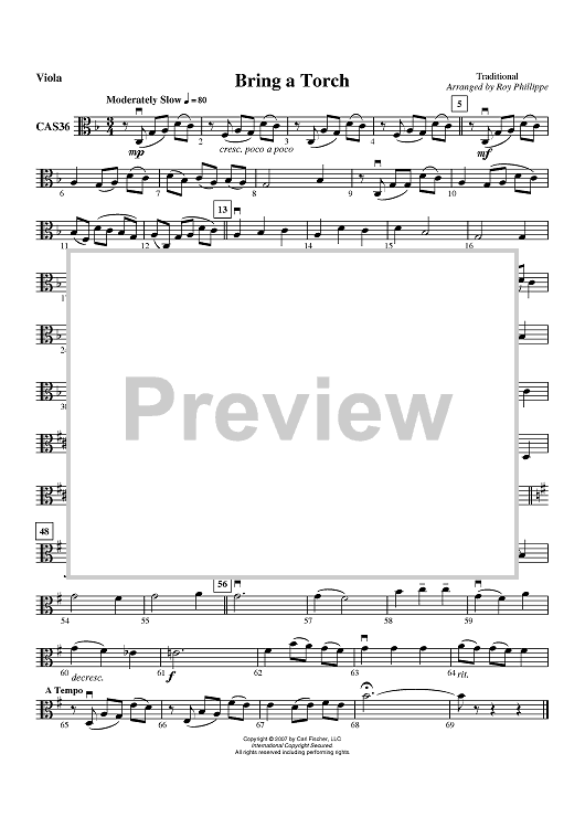 Digital Sheet Music for Bring A Torch - Viola by Traditional, Roy Phillippe scored for Orchestra; id:408023