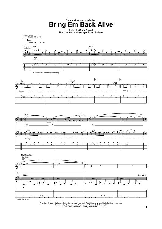 Digital Sheet Music for Bring Em Back Alive by Audioslave, Chris Cornell scored for Guitar Tab; id:372424