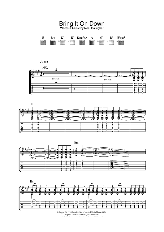 Digital Sheet Music for Bring It On Down by Noel Gallagher, Oasis scored for Guitar Tab; id:385678