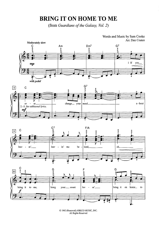 "Bring It on Home to Me" Sheet Music by Sam Cooke