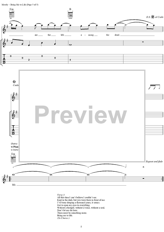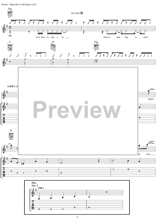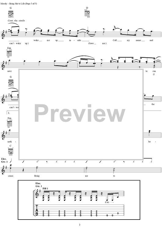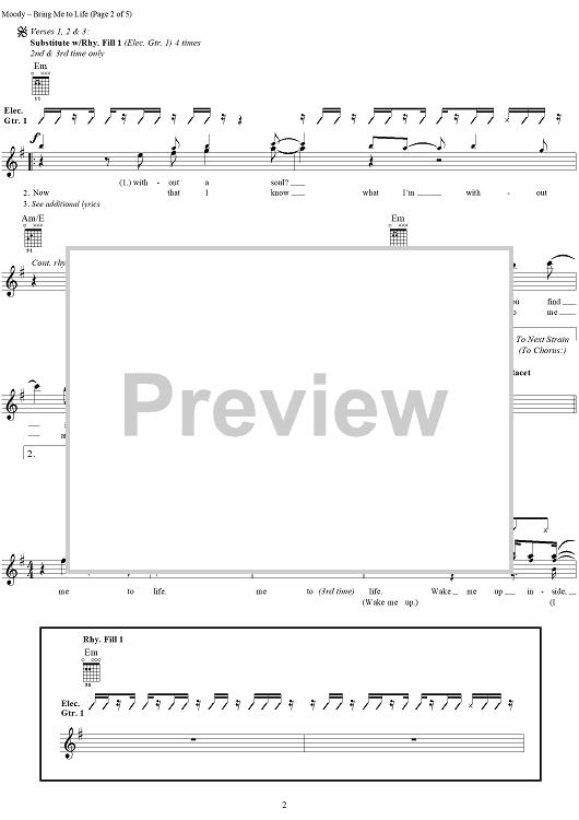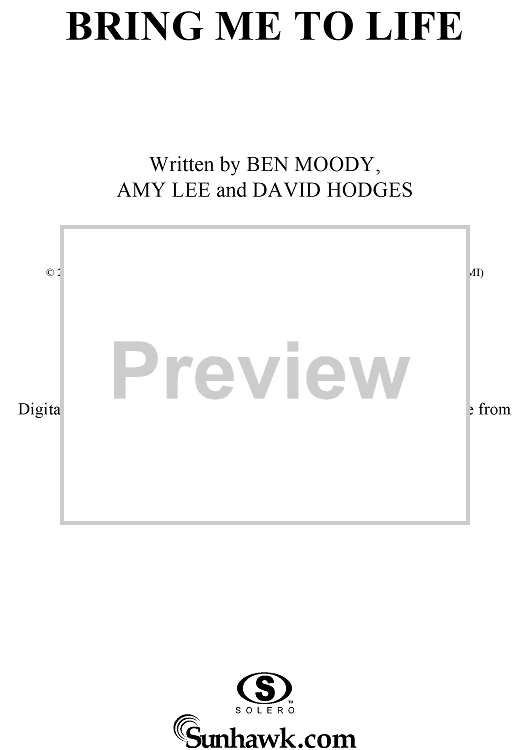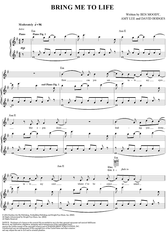 "Bring Me to Life" Sheet Music by Evanescence