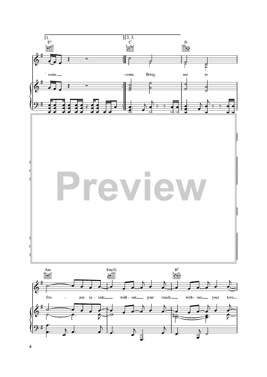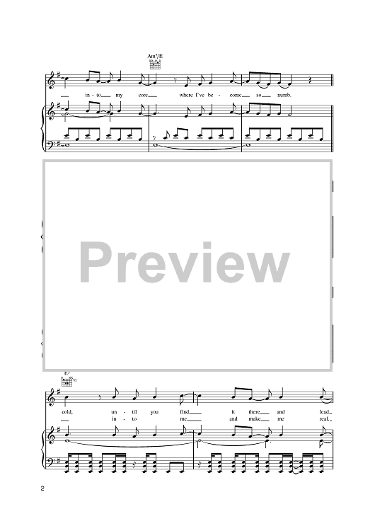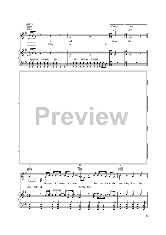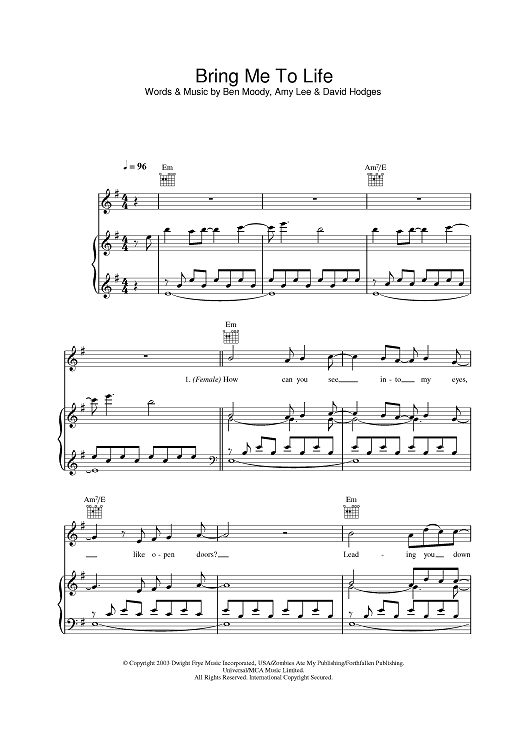 Digital Sheet Music for Bring Me To Life by Evanescence, Ben Moody, Amy Lee, David Hodges scored for Piano/Vocal/Chords; id:386598