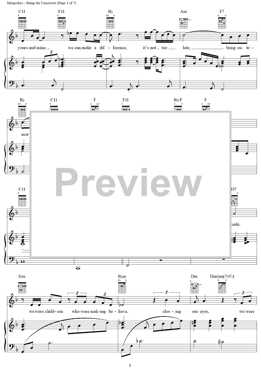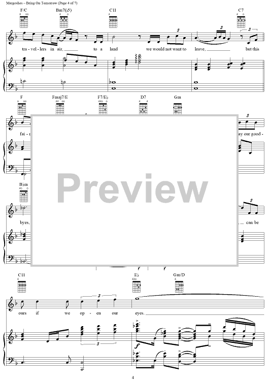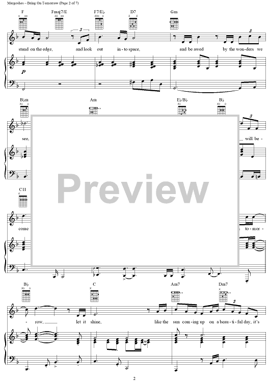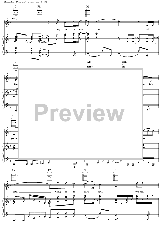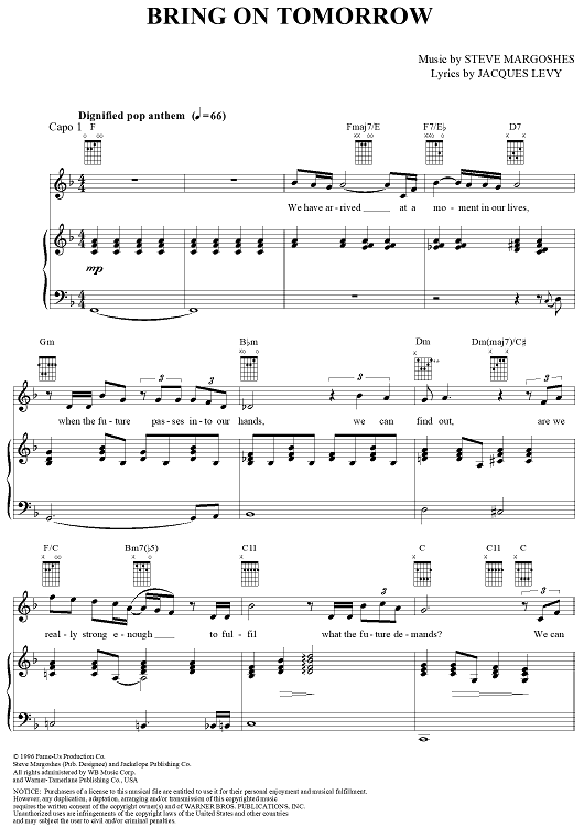 Digital Sheet Music for Bring On Tomorrow by Steve Margoshes, Jacques Levy scored for Piano/Vocal/Chords; id:359475