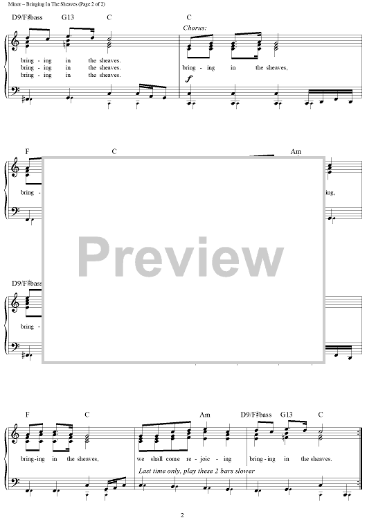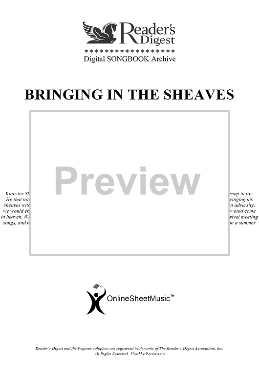 "Bringing In The Sheaves" Sheet Music by George A. Minor