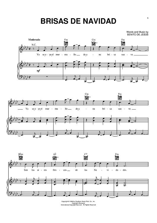 Digital Sheet Music for Brisas De Navidad by Benito De Jesus scored for Piano/Vocal/Chords; id:369806