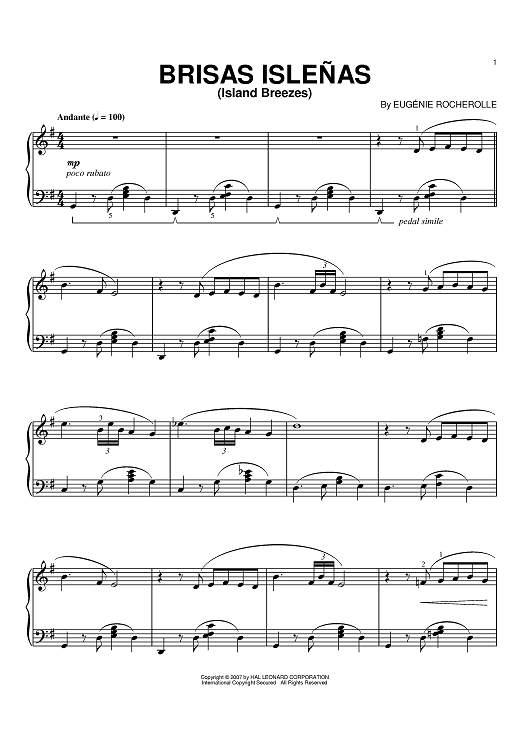 Digital Sheet Music for Brisas Islenas (Island Breezes) by Eugénie R. Rocherolle scored for Piano; id:395119