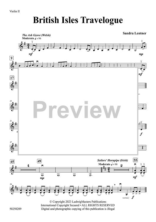 Digital Sheet Music for British Isles Travelogue - Violin 2 by Sandra Lentner scored for String Orchestra; id:507686