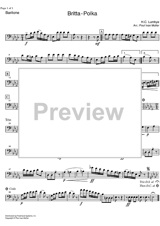 "Britta Polka - Baritone" Sheet Music by Hans Lumbye