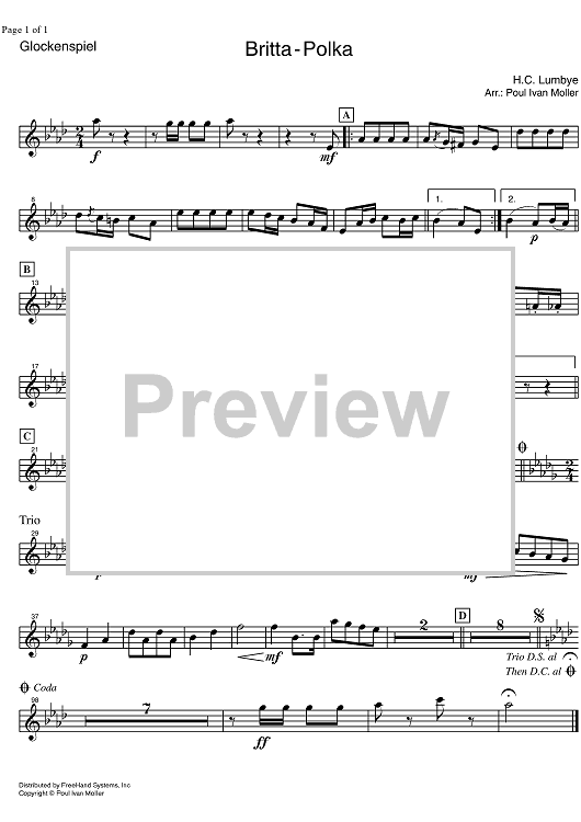 "Britta Polka - Glockenspiel" Sheet Music by Hans Lumbye