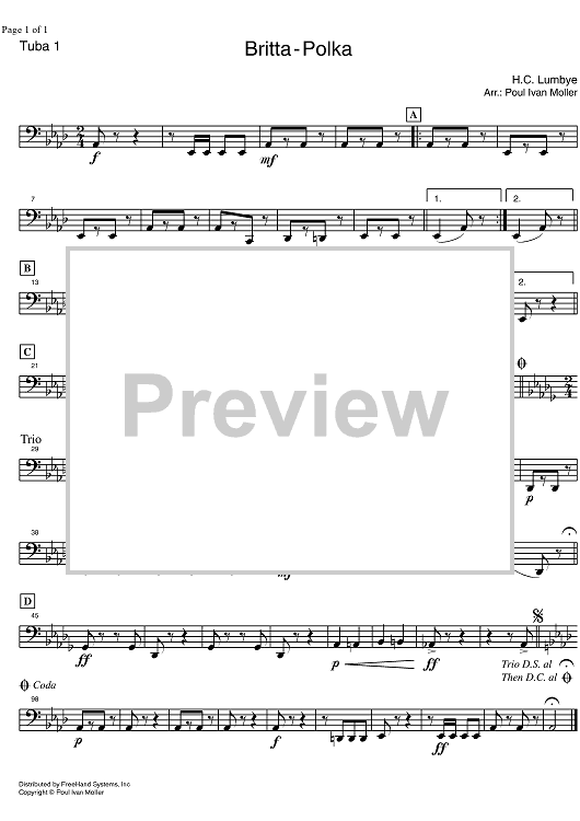 Digital Sheet Music for Britta Polka - Tuba 1 by Hans Lumbye, Poul Ivan Moller scored for Concert Band; id:330146