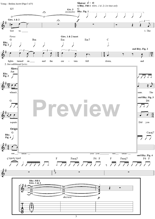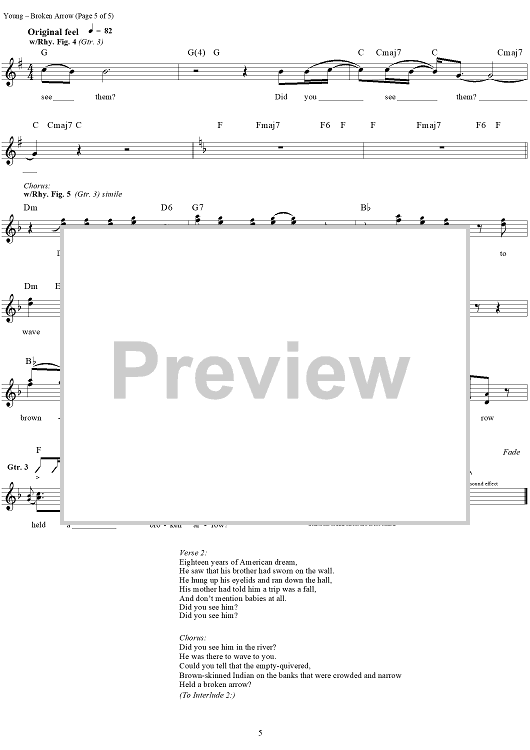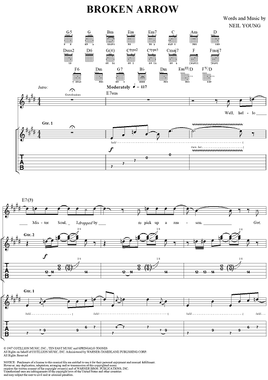 Digital Sheet Music for Broken Arrow by Neil Young scored for Guitar Tab/Vocal; id:262920