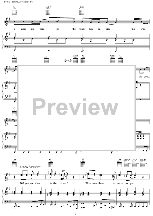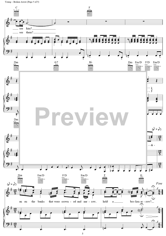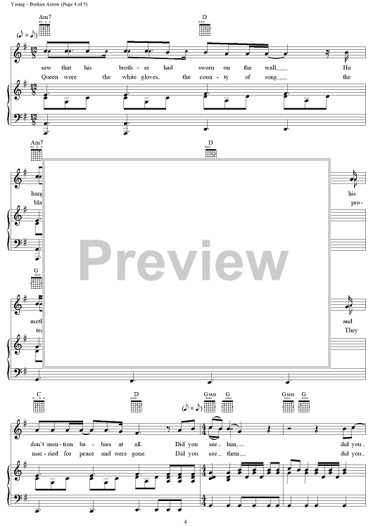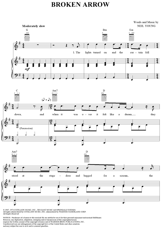 Digital Sheet Music for Broken Arrow by Neil Young scored for Piano/Vocal/Chords; id:262927