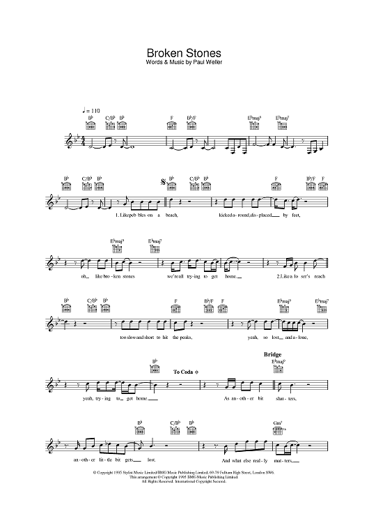 Digital Sheet Music for Broken Stones by Paul Weller scored for Lead Sheet; id:376002