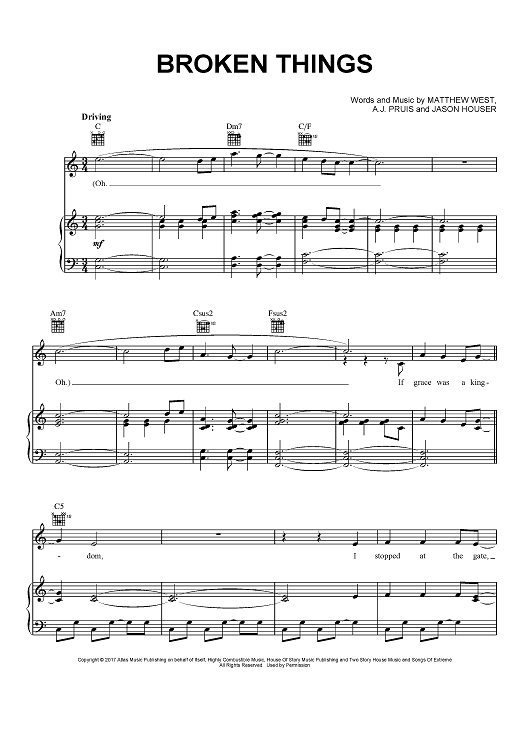 "Broken Things" Sheet Music by Matthew West