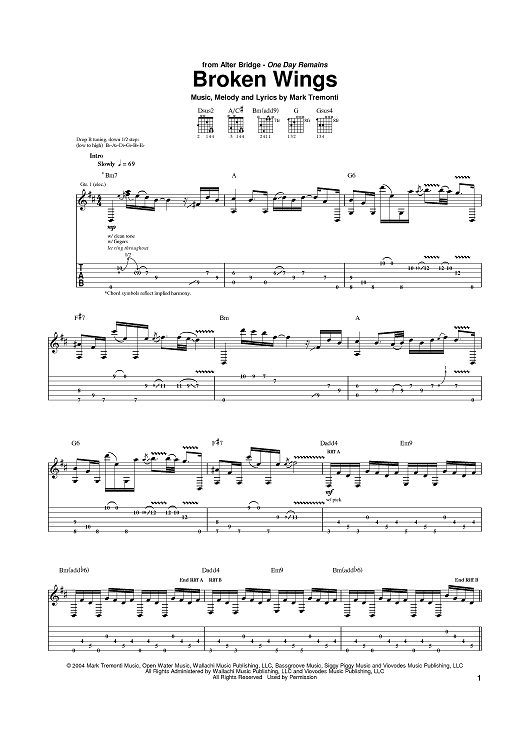 Digital Sheet Music for Broken Wings by Alter Bridge, Mark Tremonti scored for Guitar Tab; id:381558