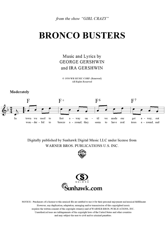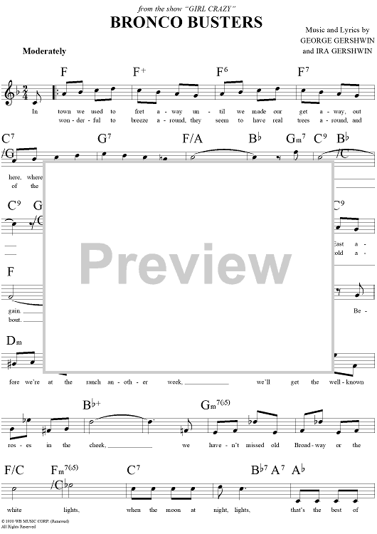 Digital Sheet Music for Bronco Busters by , George Gershwin, Ira Gershwin scored for Lead Sheet; id:283581