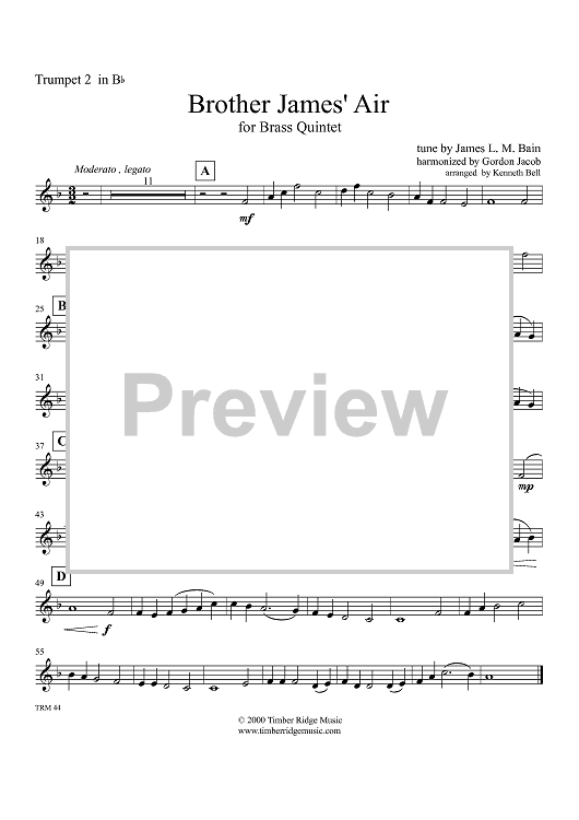"Brother James' Air - Trumpet 2 in B-flat" Sheet Music by James L. M. Bain