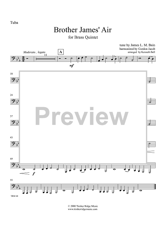 "Brother James' Air - Tuba" Sheet Music by James L. M. Bain